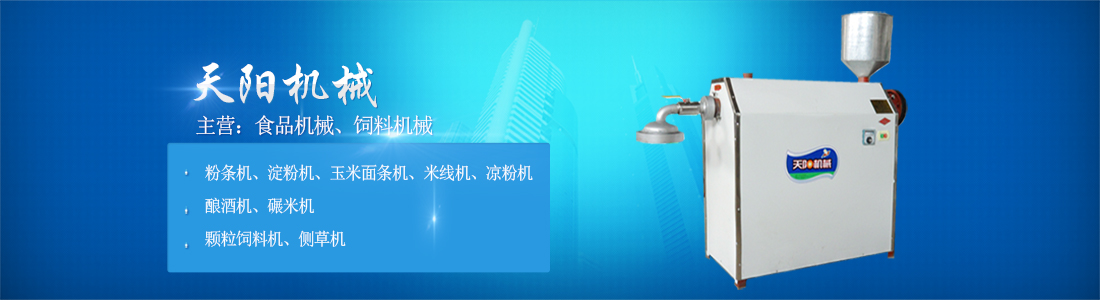 曲阜市天陽(yáng)機(jī)械制造有限公司坐落于“東方圣城”——孔子故里曲阜市,是一家從事糧食食品加工機(jī)械,飼料機(jī)械的企業(yè)。公司秉承“顧客至上,銳意進(jìn)取”的經(jīng)營(yíng)理念,堅(jiān)持以客戶(hù)為中心的原則為廣大客戶(hù)提供優(yōu)良的服務(wù),主要產(chǎn)品有粉條機(jī)、淀粉機(jī)、玉米面條機(jī)、米線(xiàn)機(jī)、涼粉機(jī)、釀酒機(jī)、碾米機(jī)、顆粒飼料機(jī)、側(cè)草機(jī)等,歡迎回顧!公司全體員工將竭誠(chéng)為您服務(wù)。